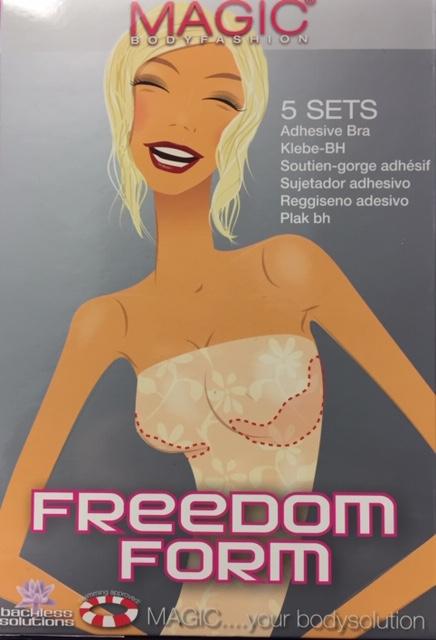 MAGIC Freedom Form. Ohuet, ihoystävälliset MAGIC teipit, jotka tukevat ilman tavallisia rintaliivejä. Nämä eivät näy kehonmyötäisten ja ohuiden vaatteiden alta. Täydelliset syvään uurrettujen ja olkaimettomien vaatteiden kanssa. Teipit kestävät vettä.