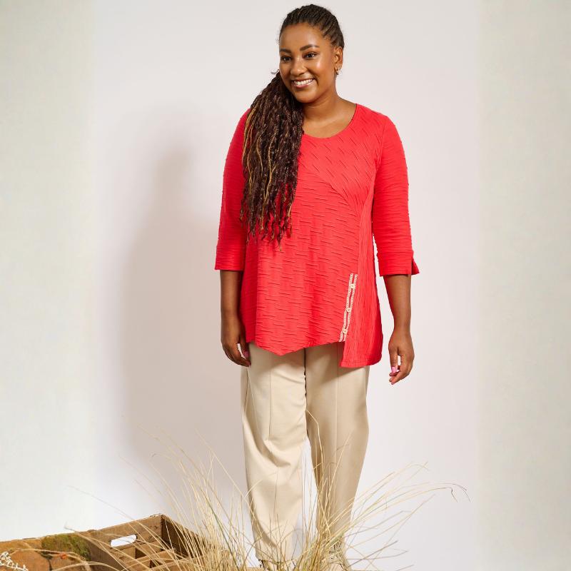 Hehkuvan punainen Pont Neuf -tunika tuo iloa ja pehmeää tyylikkyyttä arkeen. Mukava, imarteleva ja aina valmiina piristämään päivääsi.