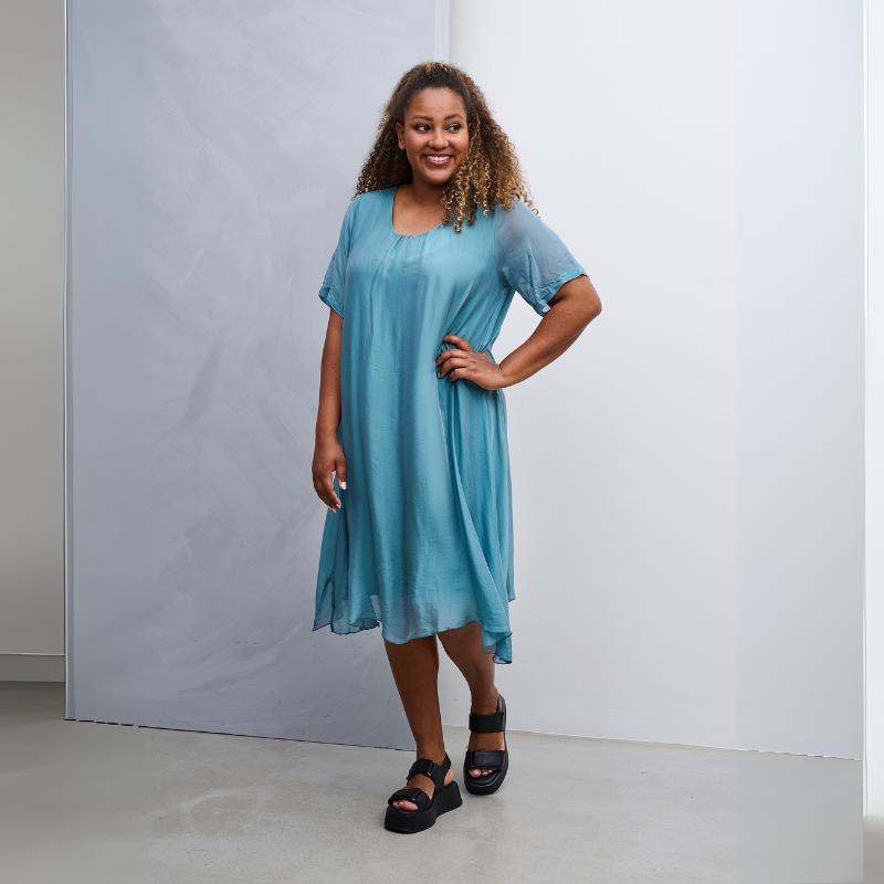 Sasa-mekko on valmistettu ylellisestä silkkisekoitteesta, joka tuntuu kevyeltä ja ilmavalta. Sen A-linjainen leikkaus takaa imartelevan istuvuuden.
