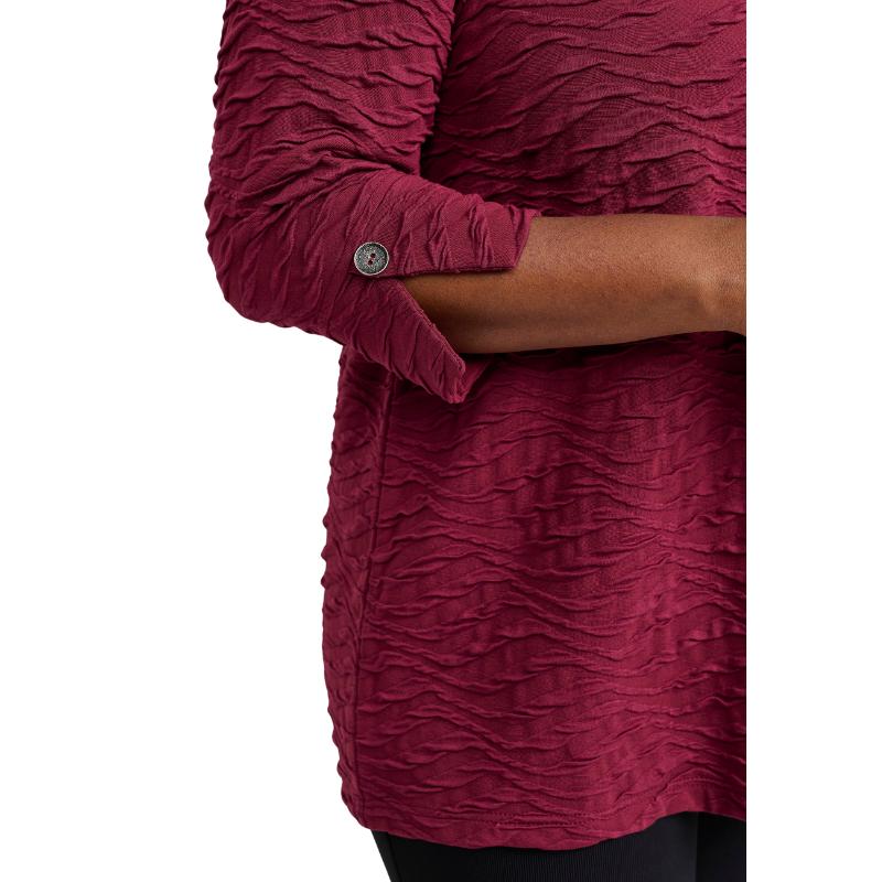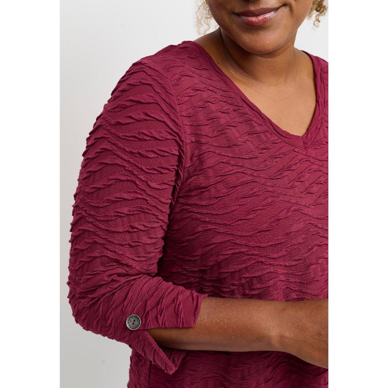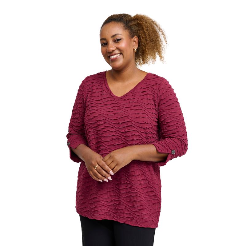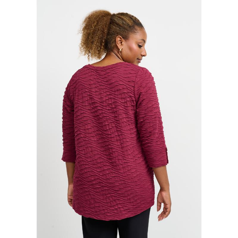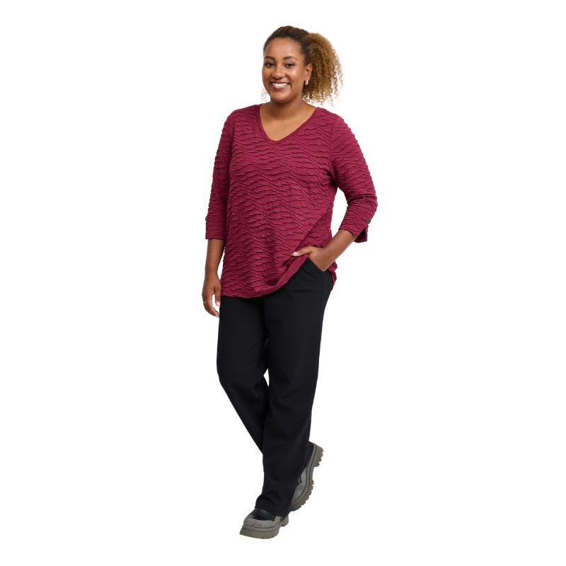 Tyylikäs ja mukava – täydellinen yhdistelmä arkeen ja menoihin. Kenya-tunika hurmaa kauniilla aaltoilevalla tekstuuripinnallaan, joka tuo asuun mielenkiintoista ilmettä. V-pääntie ja 3/4-pituiset hihat napillisella käänteellä antavat rennon mutta huolitellun vaikutelman. Väljä malli laskeutuu kauniisti ja on helppo yhdistää niin housujen kuin leggingsien kanssa.